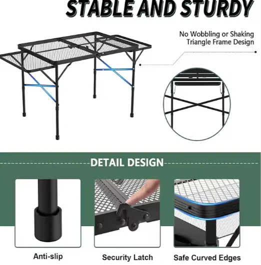 Alloy Camping Gome Kunja Kunja kwa Desk, Kukulunga Pabulo 2 Mapiko A 2x2 Ft Detktop, tebulo lokhazikika la ma mesh, gombe, bbq, gombe