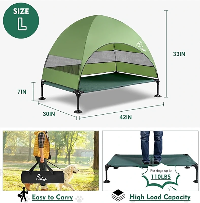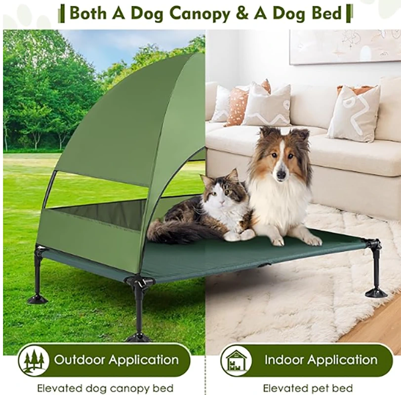 Bedi la Galu Wamphaka Lokhala Ndi Canopy, Bedi Lokwezeka la Galu Lokhala ndi Canopy, Bedi Wokwera Wokwera Panja Wokhala Ndi Mapazi Osasunthika Osasunthika, Mabedi Otalikirapo Agalu, Mabedi Okwezera Agalu Omanga Msasa Agalu Aakulu, Kugwiritsa Ntchito M'nyumba & Panja.