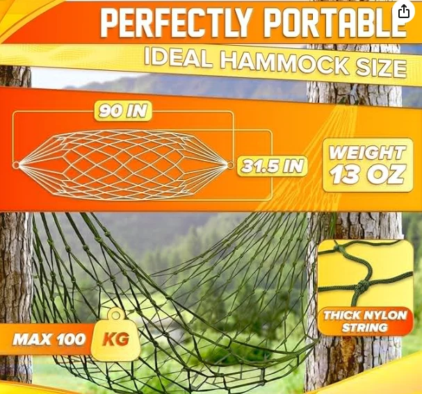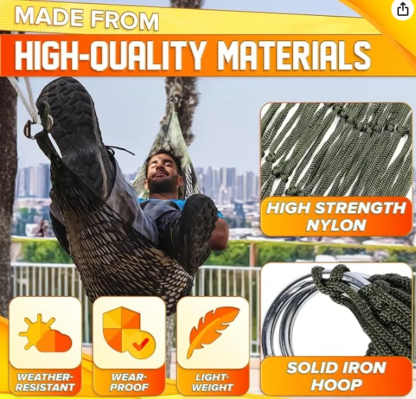 Kutamira ma hammock, ma hammock hammock amakhala ndi vuto lalikulu. Izi nylon rimmy hammock ndizabwino kwa m'nyumba ndi kunja chifukwa cha kulimba kwambiri komanso kugonjetsedwa kuvala ndi kung'amba