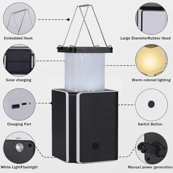 Kukhazikitsa kuwala kwa dzuwa. A LED Recorgetly Expmentiction SMD2835 Lumens yayikulu chip mkati. Kuphatikiza apo, pali chogwirizira pa thupi la nyali, mutha kuyigwira, kapena kupachikika kulikonse komwe mungafune, zosavuta