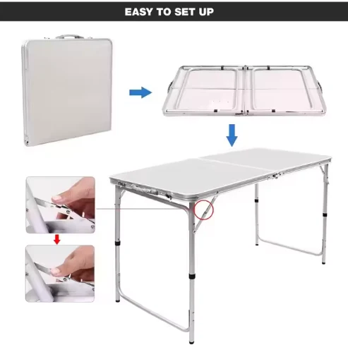 Tebulo la aluminium yonyamula aluminiyamu, limagwiritsa ntchito mitundu yambiri, kuphatikizapo panja, kuphatikiza tebulo la pikiniki, lomwe limagwiritsidwa ntchito patebulo, lokopa masewera, RV kunja.